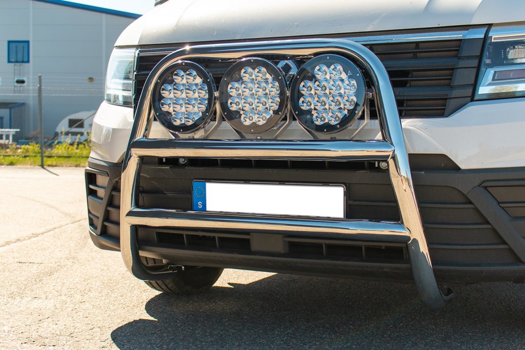 Vår frontbåge är svenskdesignad med eftertraktade egenskaper. Slitsat spår för extraljus där du själv avgör antal extraljus, och dess position. Frontbågen till VW Crafter är designad för att sitta tajt mot bilens front.